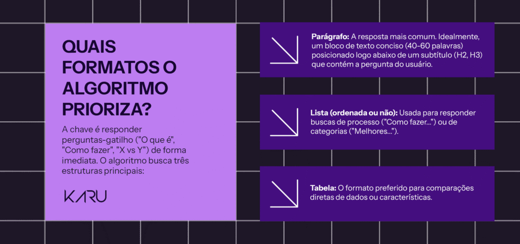 A otimização para a Posição Zero é, essencialmente, formatar seu conteúdo de uma maneira que o algoritmo do Google possa “recortar” a resposta com o mínimo de esforço.