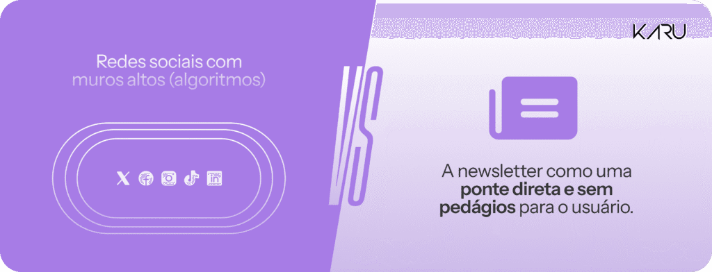 A newsletter é o coração da retenção porque ela resolve a instabilidade das redes sociais através da posse direta da audiência.