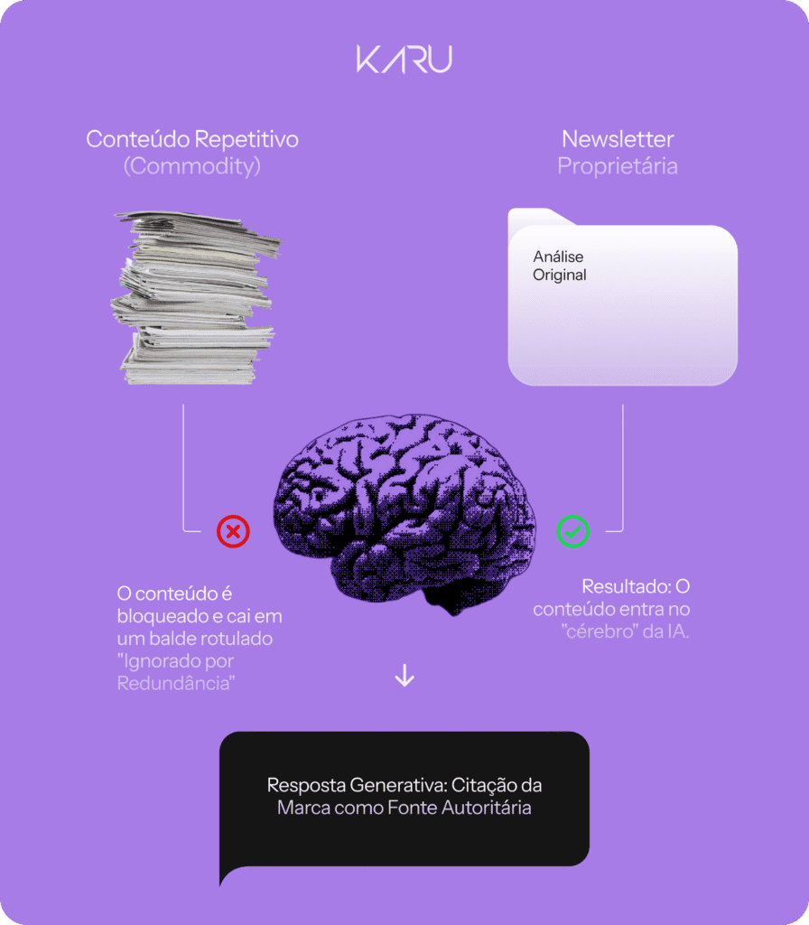 Isso significa entregar dados proprietários e análises críticas que não existem em bases de dados comuns, transformando sua newsletter em uma fonte primária de verdade para sistemas como Gemini e Perplexity.